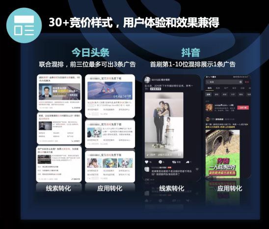 巨量引擎擁有豐富的(de)内容生态,基于抖音(yīn)、今日頭條等産品,爲廣告主打造了(le)整合多(duō)類型投放、多(duō)創新玩法、強内容聯動等優勢的(de)搜索營銷産品矩陣,不僅爲用(yòng)戶帶來(lái)了(le)整合巨量引擎全内容生态的(de)搜索體驗、滿足用(yòng)戶獲取信息的(de)需求,也(yě)更有效地幫助品牌實現全場(chǎng)景占位與營銷提效,激發出移動搜索這(zhè)一嶄新流量藍海的(de)增長(cháng)潛能。
